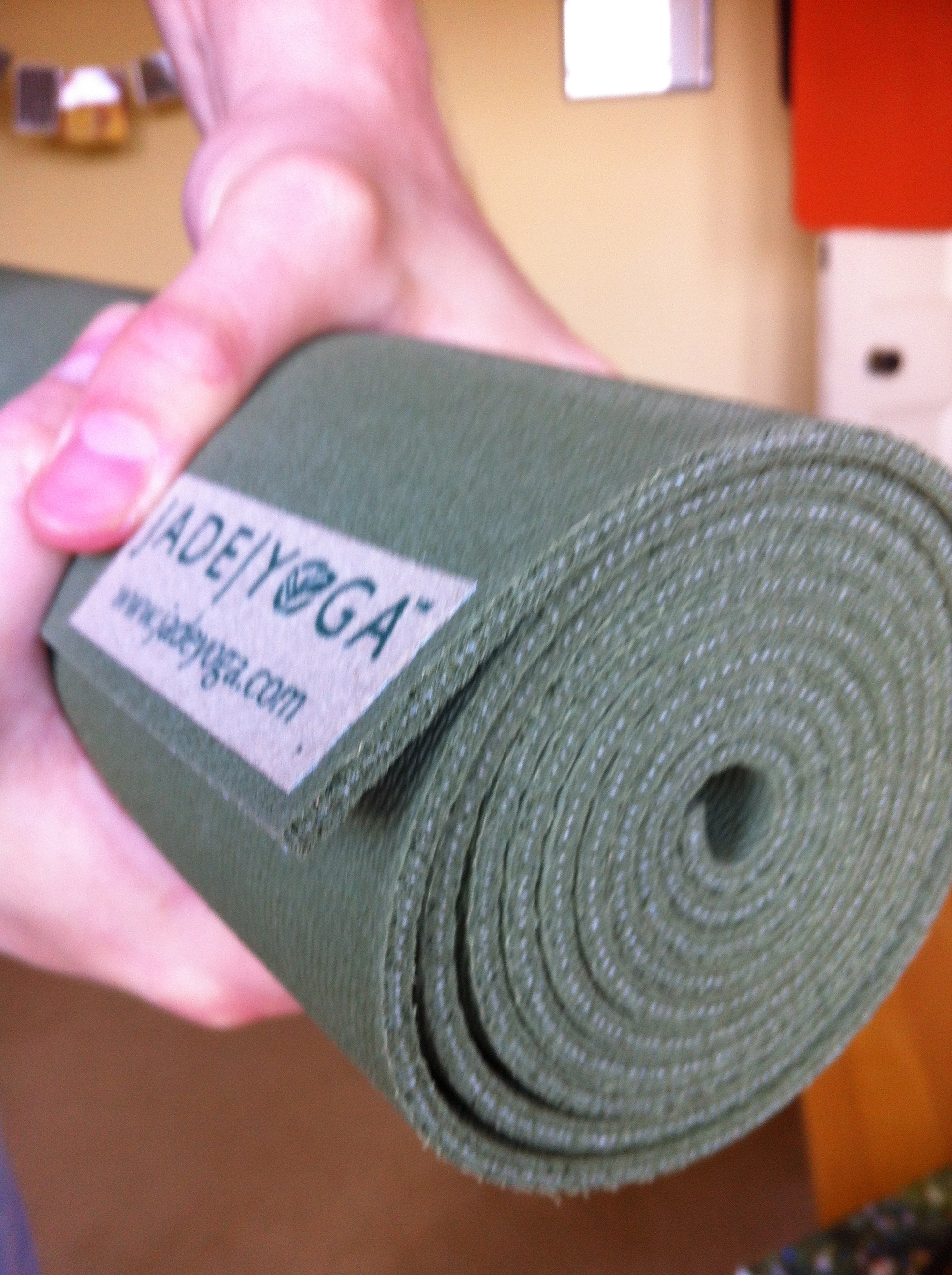 The Jade mat is lovely. Natural rubber, biodegradable, a little heavier than the grip sticky mat, which is reassuring. It’s also 100% grippy straight out of the box. The extra weight means it grips the floor, too, so you don’t go sliding around quite so much when perfecting those jump-throughs. I took this one to a sweaty Forrest yoga class for two and half hours with only a bit of slippage (awful word) towards the end.